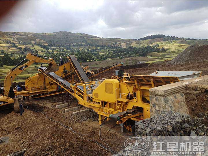 主要破碎設(shè)備:顎式移動破碎機、反擊破+振動篩移動破