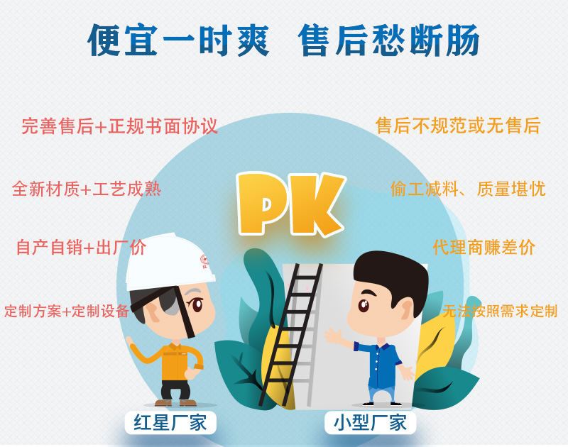 小廠家:建材市場淘一些便宜的材質(zhì)或零件,生產(chǎn)工藝不夠規(guī)范,或二手舊設備組裝,經(jīng)不起時間的考驗。
